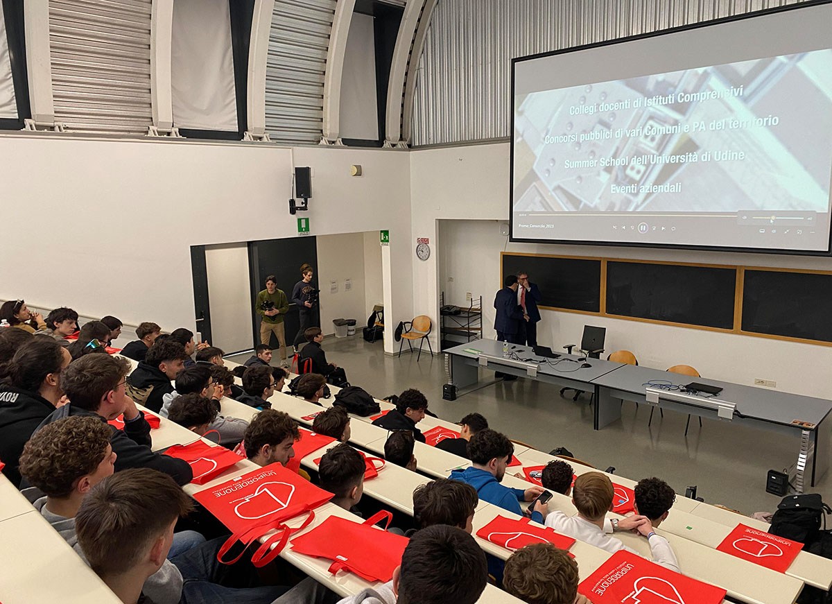 Anche l’aspetto orientativo è stato affrontato , con un percorso guidato alla scoperta del polo universitario di Pordenone, Capitale italiana  della Cultura 2027. Non sono mancati momenti culturali, come le visite alle città di Trieste e di Salò, così come proposte di puro svago e divertimento ed anche qui, grazie al nostro DJGabber, ci siamo fatti notare facendo ballare una platea di più di mille studenti!